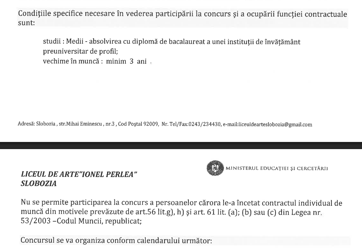 Astfel, in introducere se mentioneaza ce fel de post se scoate la concurs, denumirea sa, gradatia (un fel de echivalent pentru debutant / junior / senior), departamentul unde e deschis postul, apoi vin conditiile generale care sunt reglementate de legislatia nationala si europeana (sa aiba cetatenie romana / europeana, sa cunoasca limba romana, sa nu fi fost condamnat penal etc. De multe ori se trec rapid peste ele pentru ca reprezinta lucruri de bun simt, si nu ceva super exclusivist (exceptand cetatenia).